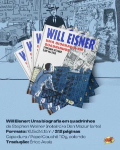 O projeto Will Eisner: Uma biografia em quadrinhos Ele é um nome que sintetiza o melhor do universo dos quadrinhos, tanto como criador quanto como influenciador do meio. Sua carreira se estendeu por oito décadas, período em que foi um dos pioneiros da indústria e fundamental na consolidação da graphic novel como uma forma de arte respeitada. Will Eisner: Uma biografia em quadrinhos, escrita pelo historiador de quadrinhos Steven Weiner e pelo cartunista Dan Mazur, retrata com maestria a trajetória